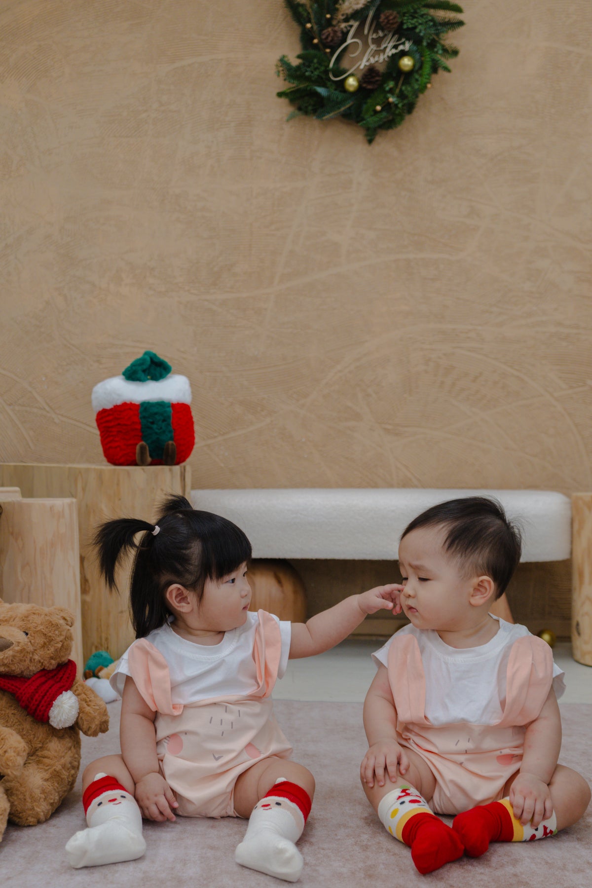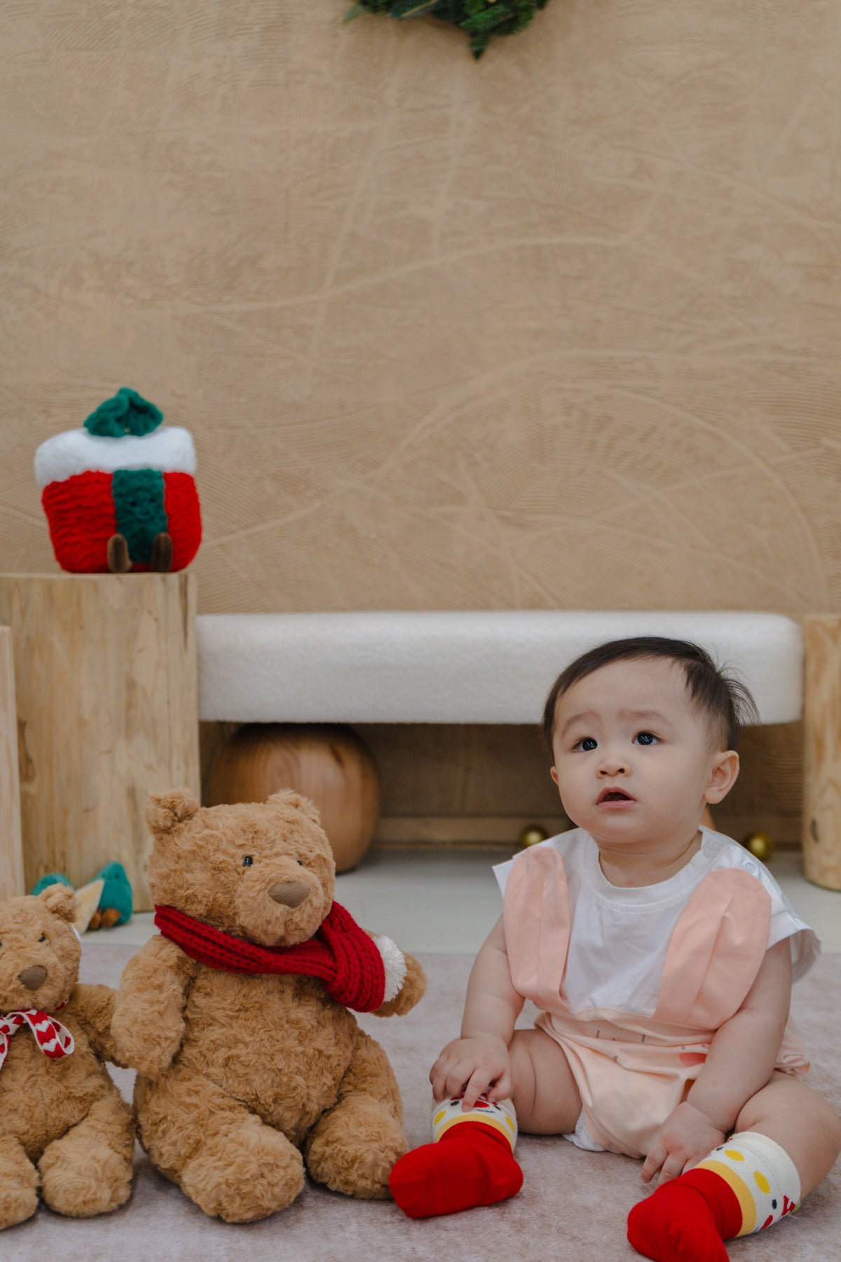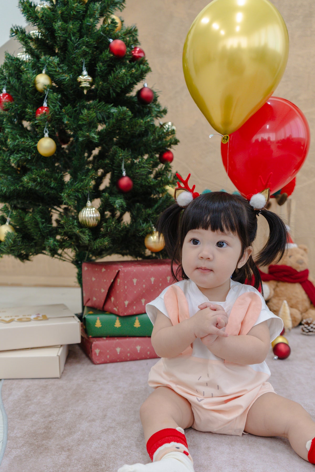 A gentle touch of magic for your baby’s first Christmas. Our Bunny Romper features soft pastel tones, playful 3D ears, and a fluffy tail at the back — a heart-melting outfit for cozy mornings and Christmas snapshots.