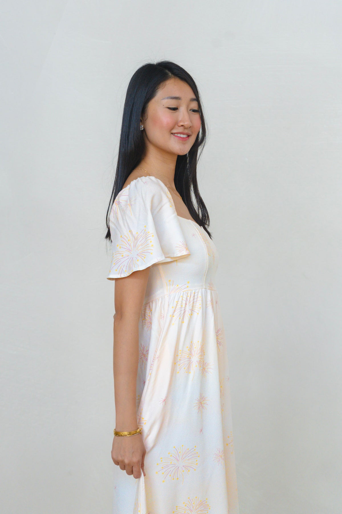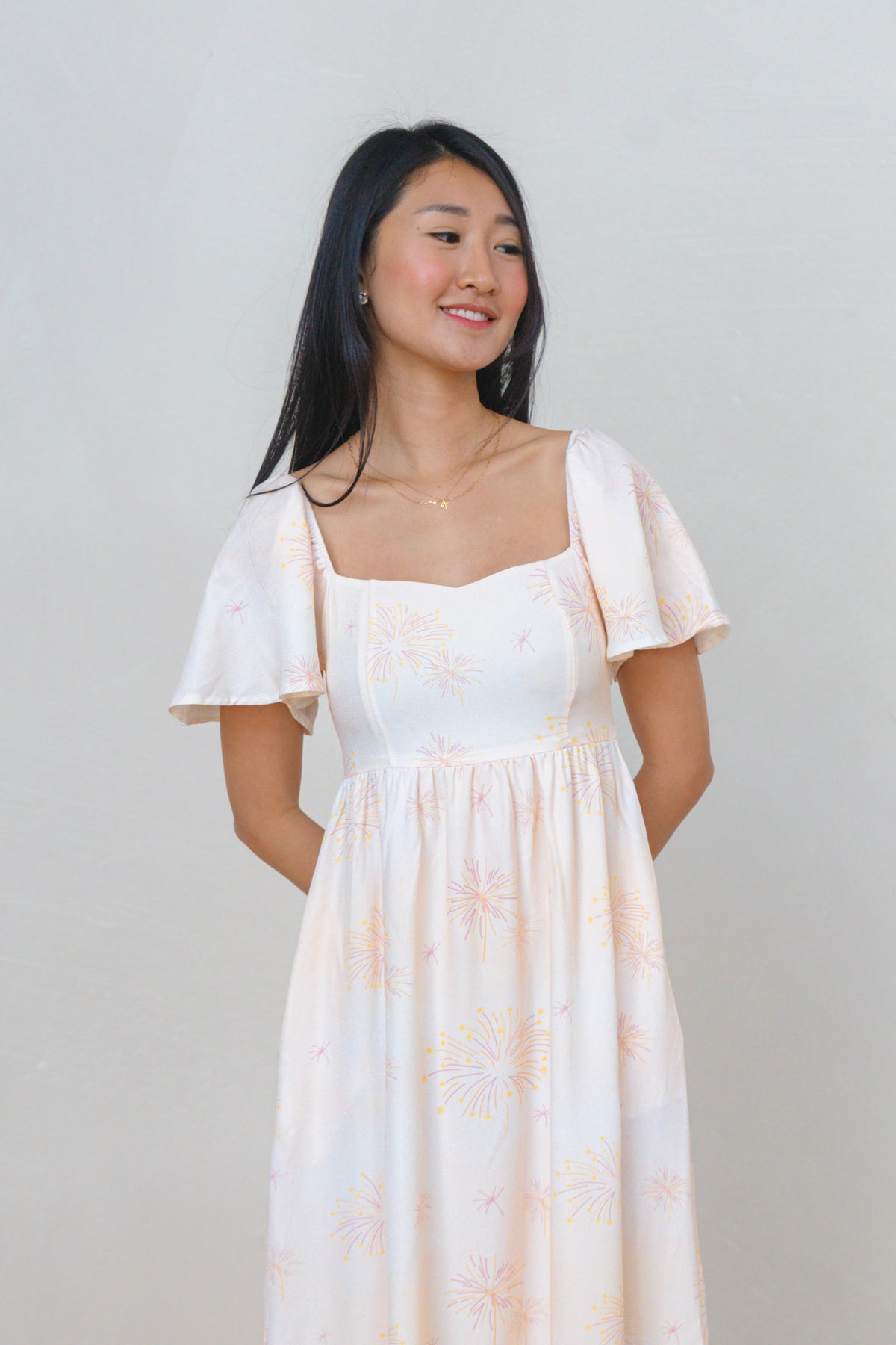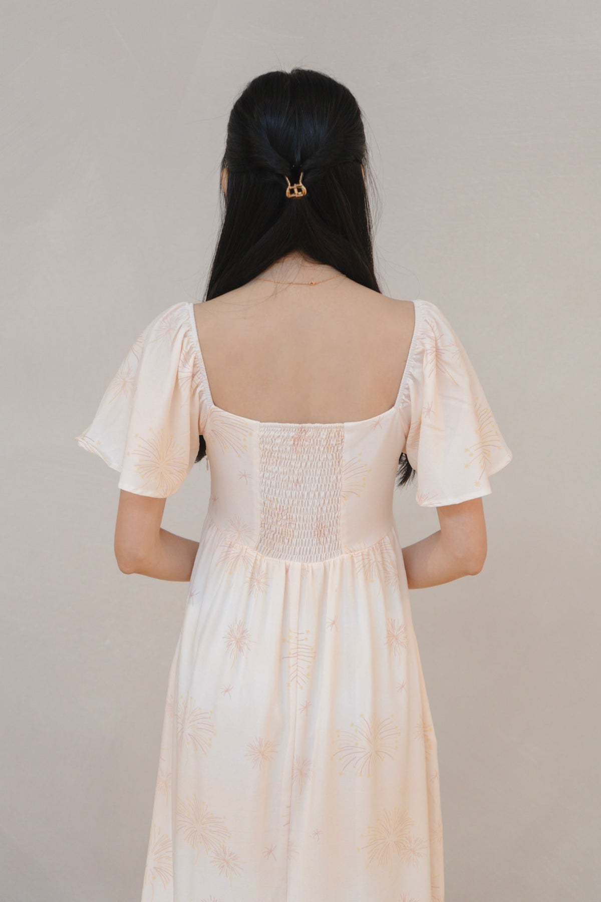 Golden Dawn Ladies Flutter Sleeve Smocked Back Midaxi Dress