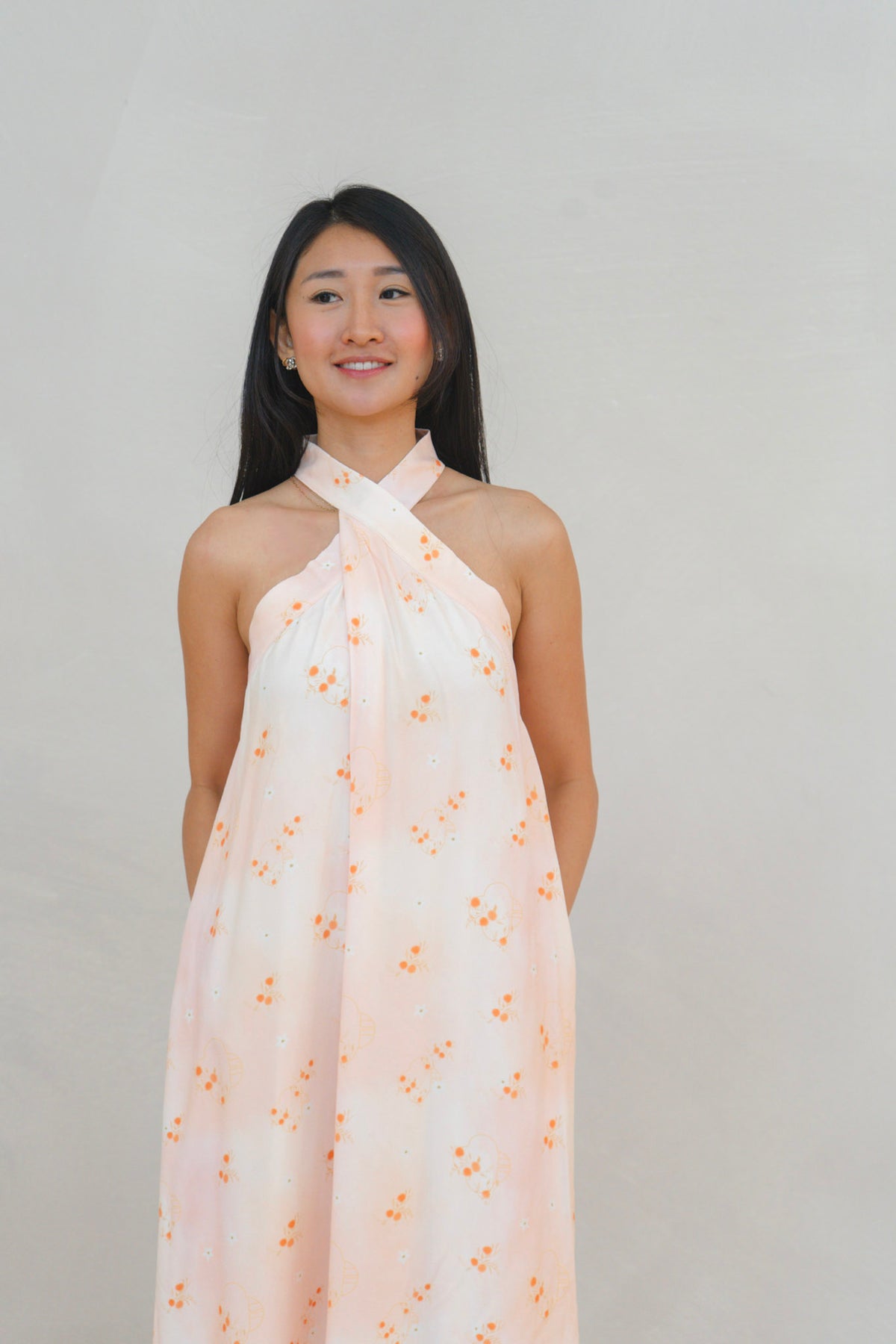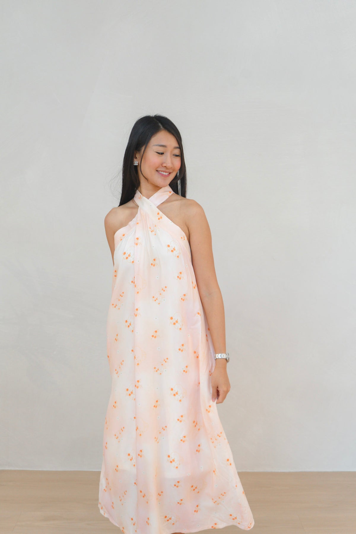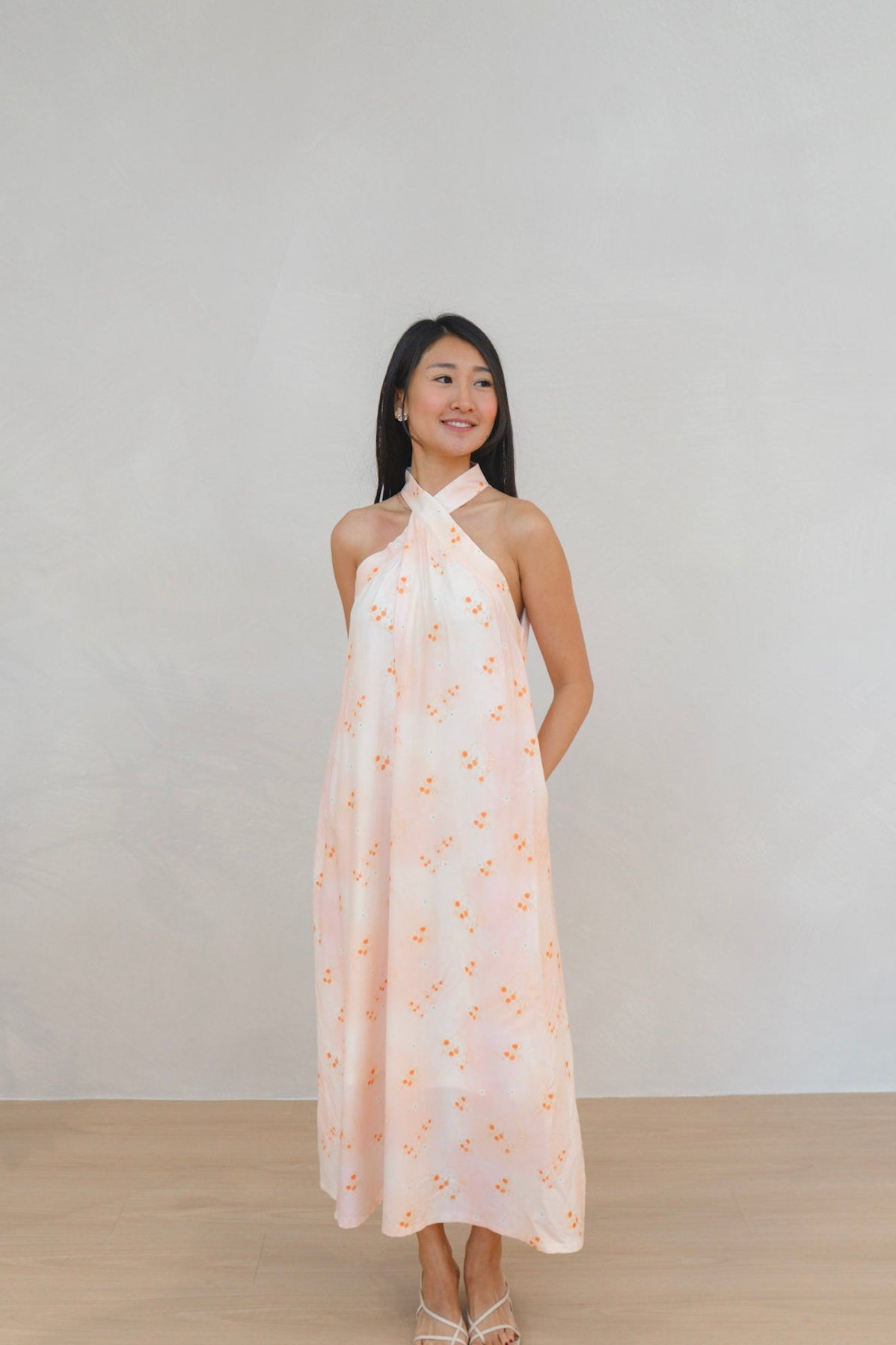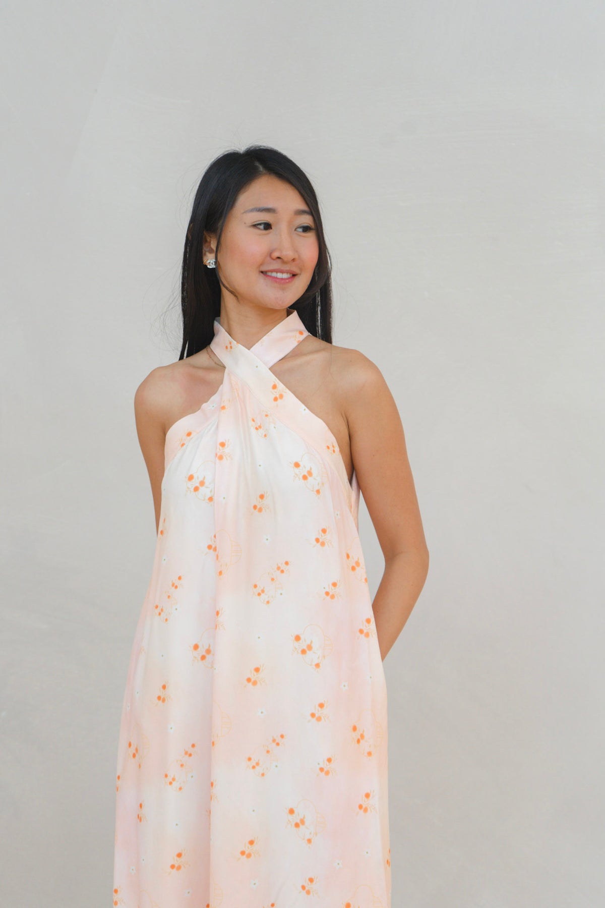 Tangerine Bloom Ladies Halter Neck Maxi Dress